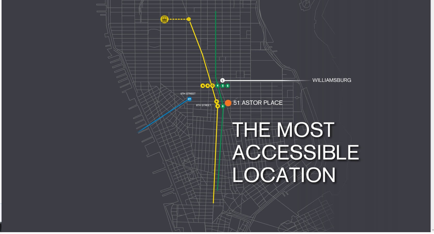 Located between 9th Street and St. Marks and between Third and Fourth Avenues, 51 Astor Place is unlike any other building in Midtown South. Wrapped in glass, this is the only modern office tower in the neighborhood and was designed to offer more efficiencies and competencies than competing building stock. (Looking for other office spaces in Midtown South? Click here for a free search)