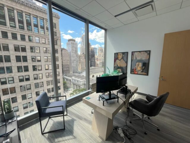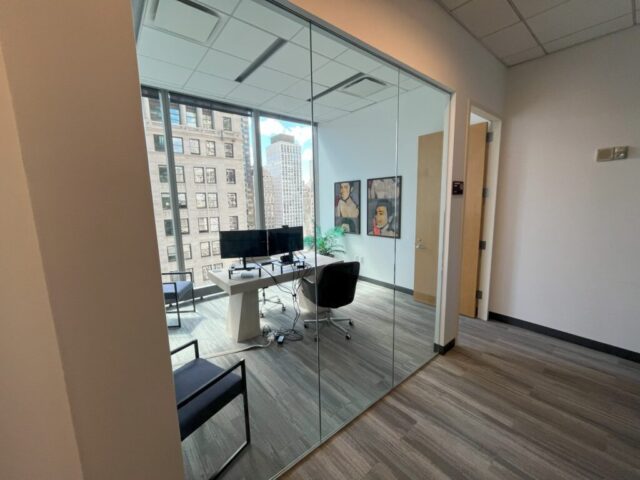 A modern prebuilt office suite is now available for immediate occupancy on the partial 15th floor. Measuring 2,384 rentable square feet, this boutique office space sublease offers a highly efficient layout ideal for hedge funds, investment firms, or boutique financial services tenants.