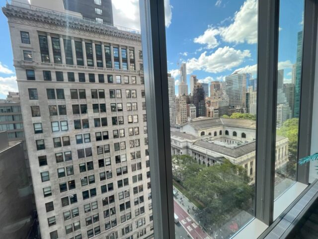 The space benefits from southern exposures with sweeping views of Bryant Park, 42nd Street, and the iconic New York Public Library. The term runs through June 2030, offering long-term flexibility for tenants.