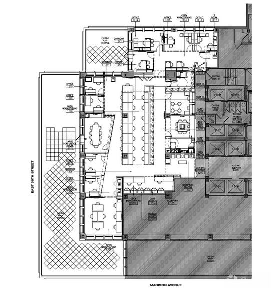 Currently occupied by a former hedge fund (that is vacating in the New Year), the partial 12th floor is built out to a very high standard. Measuring 7,500 rentable square feet, the unit is currently designed and furnished with 8 offices, 2 conference rooms, pantry, reception and open area for 20+ positions (click here for a floorplan). Similar to many newer installations, the space features a combination of exposed ceilings to maximize light and air, as well as traditional drop ceilings in certain areas. As an added perk, the space includes a very large useable terrace that is perfect for entertaining or investor meetings. Click here to contact us for the asking rent or here for our free and instant office space search.