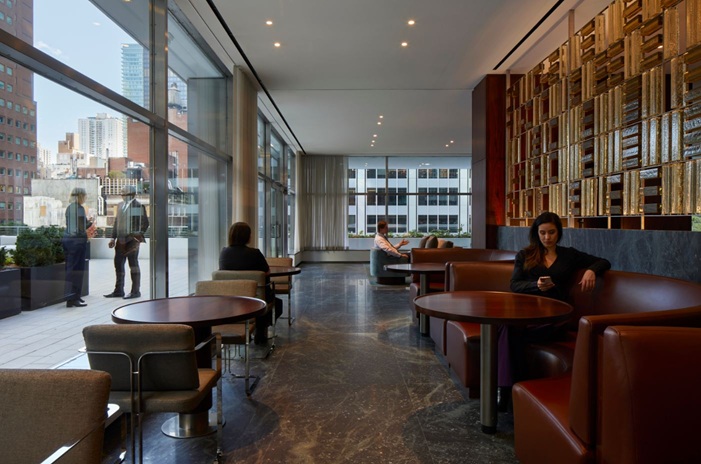 Park Lounge: The entire 27th floor has been transformed into a 20,000-square-foot amenity floor featuring dining and bar areas, conferencing facilities, and private meeting rooms. This is one of the most luxurious communal tenant spaces in New York City.